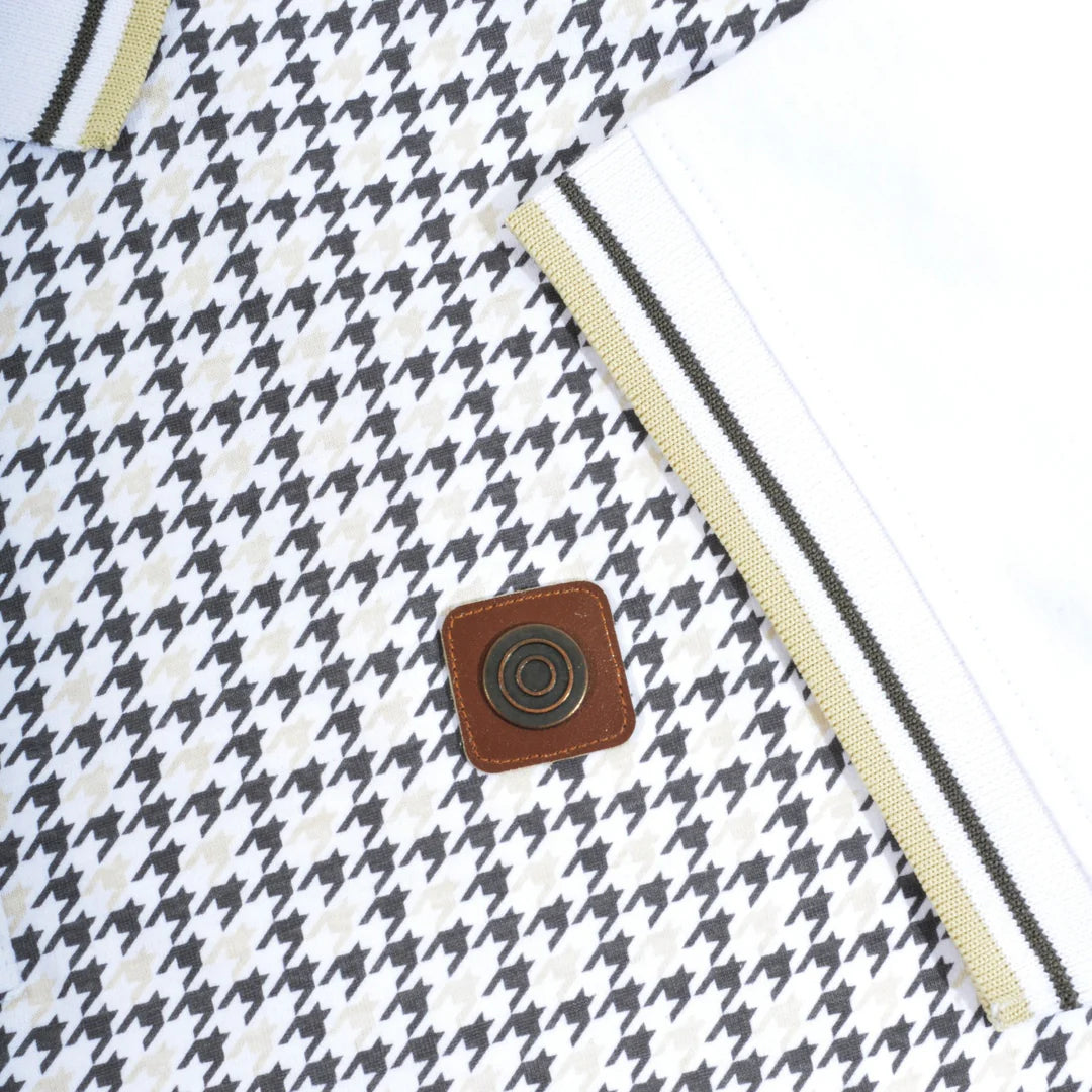 Lambretta Houndstooth Polo - White / Iron / Silver
